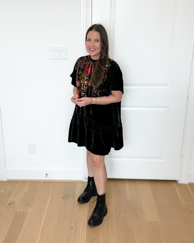 Velvet Mini Dress with Combat Boots